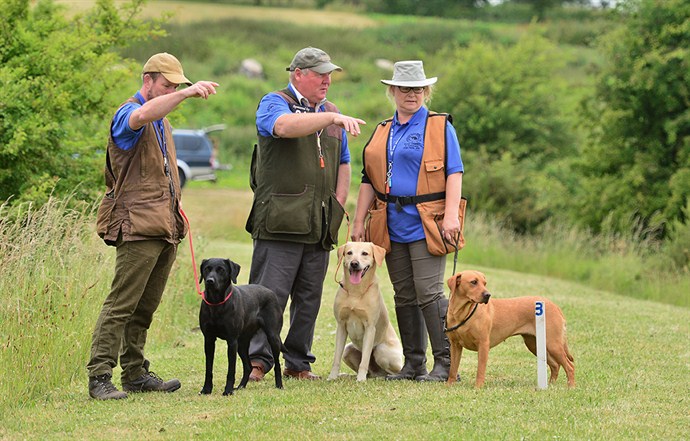 After the break, three more tests were set, a walk up with three marks in a strip of long grass; a drive after which each dog had to hunt an area of cover to pick a blind over a jump and another three blinds in cover with a distraction. This last test was the only one where the handlers could decide between themselves which dummy to pick.