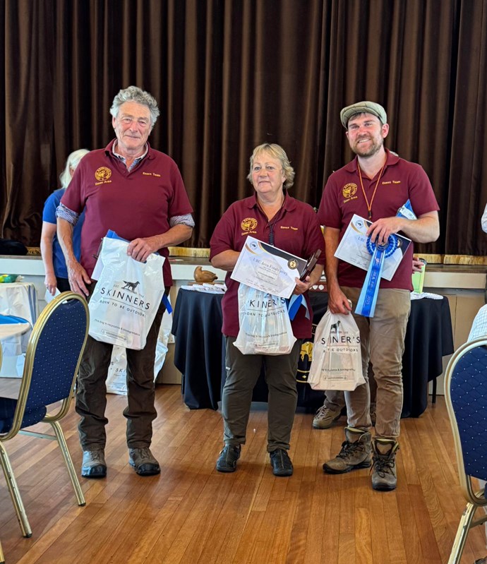 Three Tests were double retrieves and two just singles. Scenting was difficult in the heat with the dry ground and no wind in the valley bottom among the scrub. The blinds were mostly without shot and required accuracy from both dog and handler.